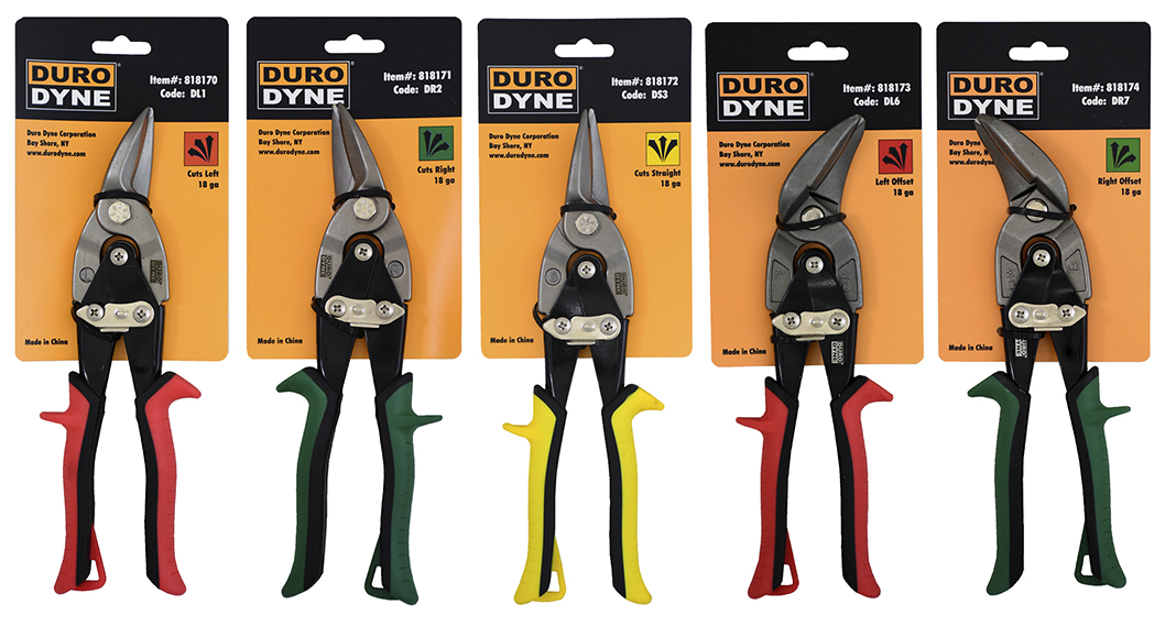 Snips are available in three variations and all cut 18ga. The ergonomic handle is designed to reduce hand fatigue. Snips are backed by a one year ''common sense'' warranty.
