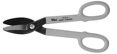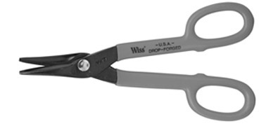 lots more. The Wiss HM-41V features a patented ball-bearing jaw action that automatically adjusts the blade clearance for squarer, cleaner cuts. It cuts a 11/64" wide strip and curls it away from the operator’s hands. This snip has a matte black finish and cushion grip red
