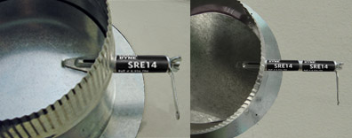 The RAPIT is an inexpensive, rattle-free regulator for quick installation on balance or splitter dampers. It is formed from rust-resistant, heavy gauge, galvanized steel and installs in seconds. The Rapit will penetrate and secure to round or rectangular damper blades up to 24 gauge steel. It has a fully retractable bearing of zinc alloy, threaded to accept a 5/16-18 wing nut and a handle that indicates the damper position. It’s as easy to use as 1-2-3.