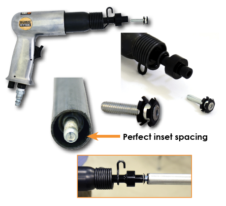 The Dyn-O-Loc Insertion tool allows you to place a Dyn-O-Loc onto the end of the Air Gun and easily insert it into the end of hollow conduit. The dimension of the Dyn-O-Loc Insertion Tool assures perfect inset spacing of the loc every time.