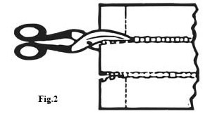 2. From the edge of the connector, cut away metal as indicated. The metal falls away exposing the fabric ready for seaming.