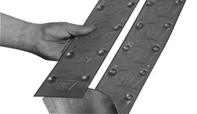 Air travelling throughout a duct is slowed up when it reaches a right turn angle. This "slow-up" is detrimental to the efficiency of the duct system, therefore air turning vane assemblies are used to guide air evenly around such turns. With today's high labor costs, it is expensive for shops to produce their own air turning assemblies. That is why Duro Dyne Vane Rail is a major contribution to sheet metal shops that require efficient, yet inexpensive air turning assemblies. With Duro Vane Rail, which is a pre-fab side rail, layout time is eliminated. Vanes can be sheared from scrap metal without tab cutting, and quickly assembled to rails with only one blow of a ball peen hammer. Duro Dyne Vane Rail, made up of 24 gauge galvanized steel, is precision-stamped and slotted assuring uniform spacing of vanes, and the fastest, easiest, most economical construction of vane assemblies. Duro Dyne Vane Rail is specially embossed adding strength and sturdiness to the finished section. Vane Rail can be used to make quality turning vanes for any size elbow including change of size elbows.