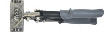 The seamer has high leverage compound action handles for easy metal bending and flattening. It produces a permanent tight fitting seam. The jaw has 1/4" incremental depth marks. The tool has a matte black finish with red plastisol grips. It is recommended for use on steel up to 18 gage.