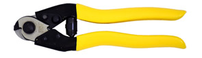 This top quality pocket-size cutter is perfectly designed to cut up to 1/8" wire rope, cable, piano wire or aircraft cable. It has plastisol handles and exposed metal surfaces are coated with a rust preventative finish. The spring action shear-cut blades automatically open when handle pressure is removed.