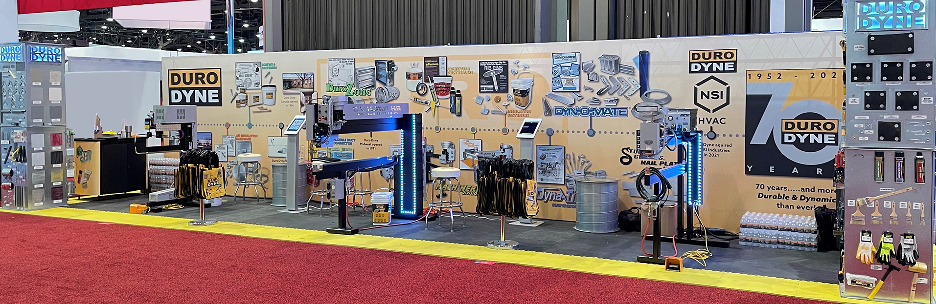 Duro Dyne is celebrating our Platinum 70th Anniversary in 2022, and we unveiled the Platinum Edition Machinery line, in honor of our anniversary, at the show. Our 40ft long backdrop was a timeline of Duro Dyne from 1952 to 2022, showcasing how we have evolved over the years.