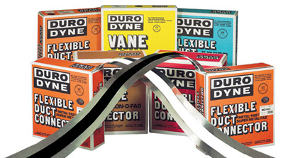Todas las instalaciones de conductos para calefacción, aire acondicionado o ventilación se conectan a equipos mecánicos con un ventilador o soplador. Las vibraciones, los ruidos y el rechinar causado por el funcionamiento del ventilador o soplador se transmiten por los conductos metálicos y éstos llevan los ruidos por todo el sistema.A fin de aislar la vibración y los ruidos desde su origen, se debe insertar entre el equipo y la red de conductos una junta flexible y hermética, conformada por una tela que se asegura a la lámina metálica a ambos lados. Esta junta flexible se denomina “Conector Flexible de Conductos”.A fin de satisfacer los requerimientos de todos los tipos de instalación, ya sea de fábricas, instituciones, oficinas u hogares, Duro Dyne ofrece una gran variedad de tamaños y telas de conectores flexibles de conductos (clasificados por U.L.), prearmados con la lámina de metal asegurada permanentemente a la tela por medio de trabas soldadas exclusivas. Los Conectores flexibles de conductos que ofrece Duro Dyne se entregan en caja de cartón, listos para instalarlos rápidamente y más económicamente que cualquier otro método convencional.