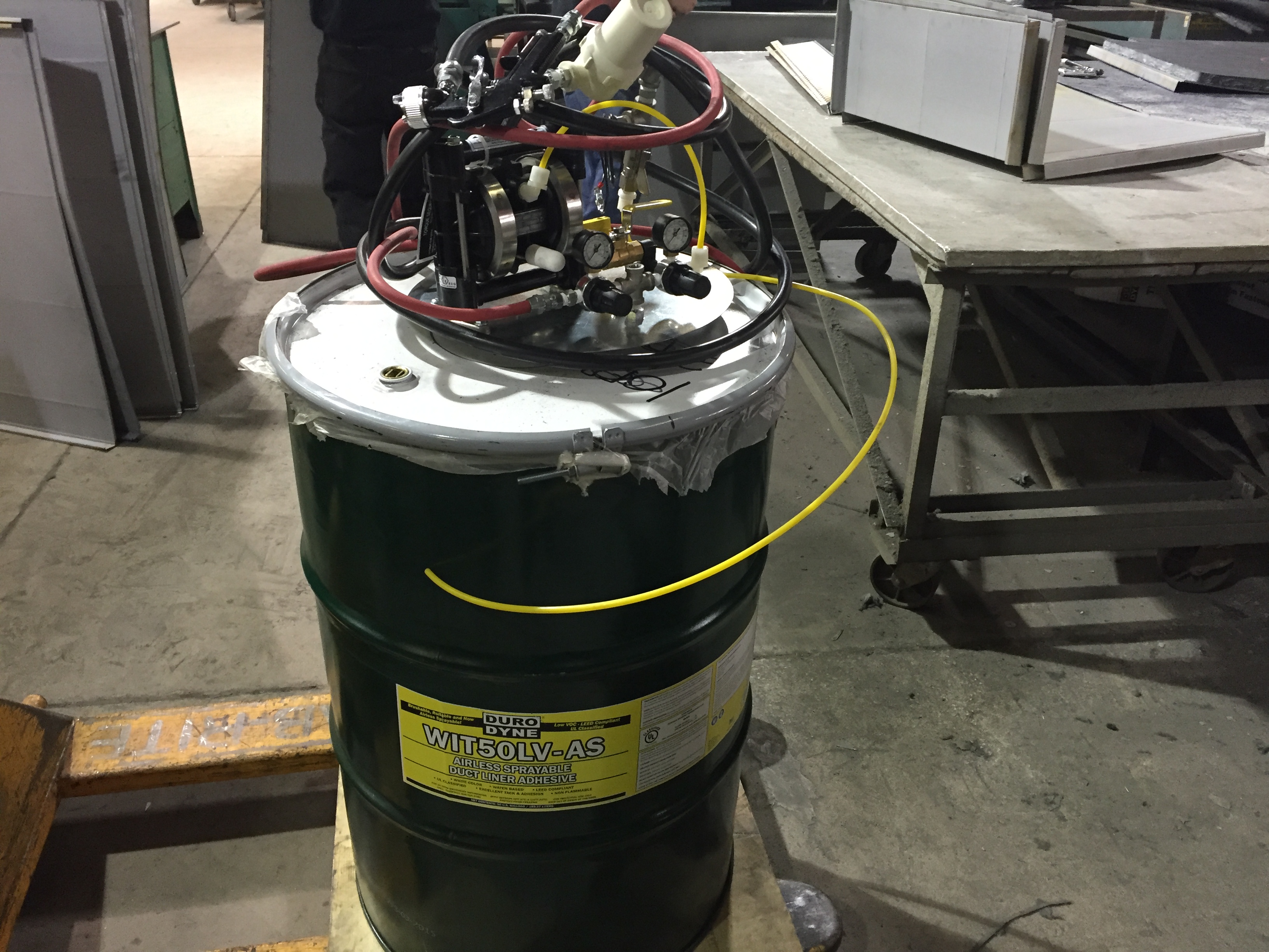 Fab-rite sheet metal in Des Plains, Illinois had a emergency breakdown of another manufacturers adhesive pump and Duro Dyne came to the rescue with the SSFU - Super Spray Fast Universal Pump! Owner Pat Ryan couldn't be happier with Duro Dyne service!