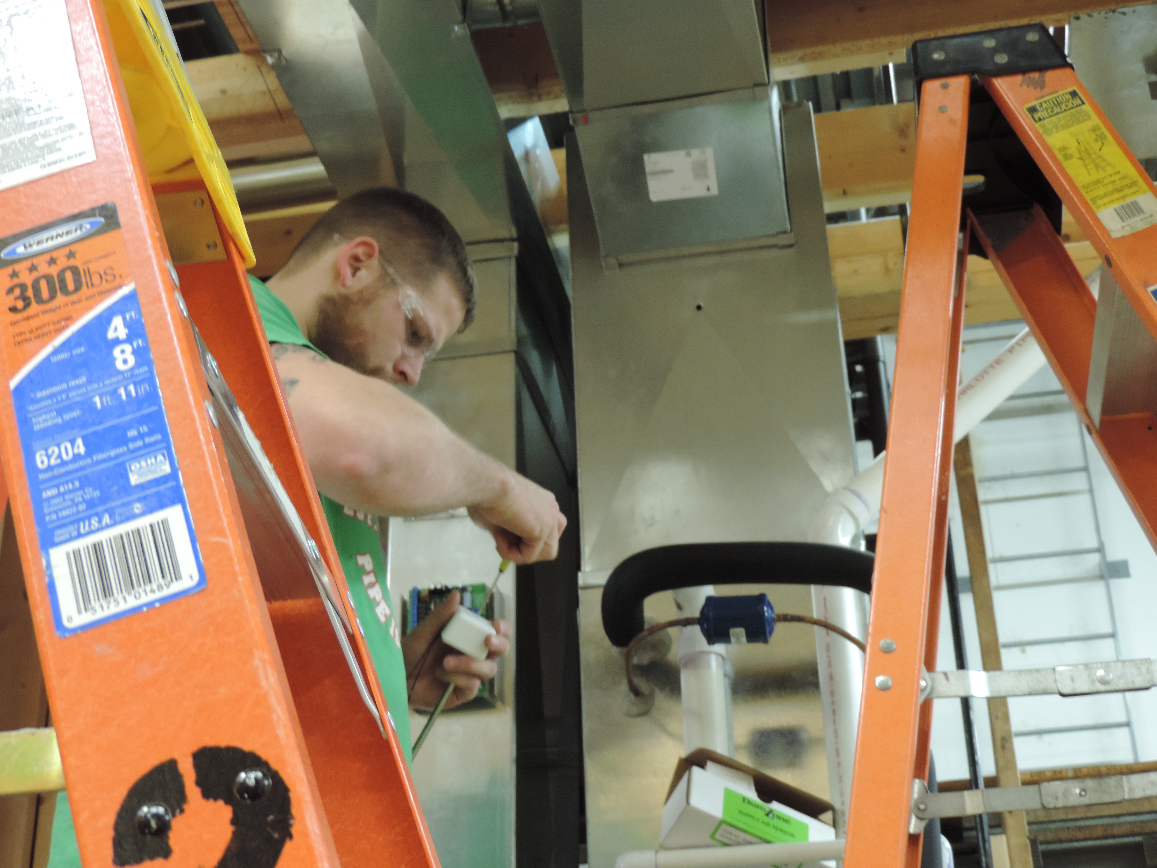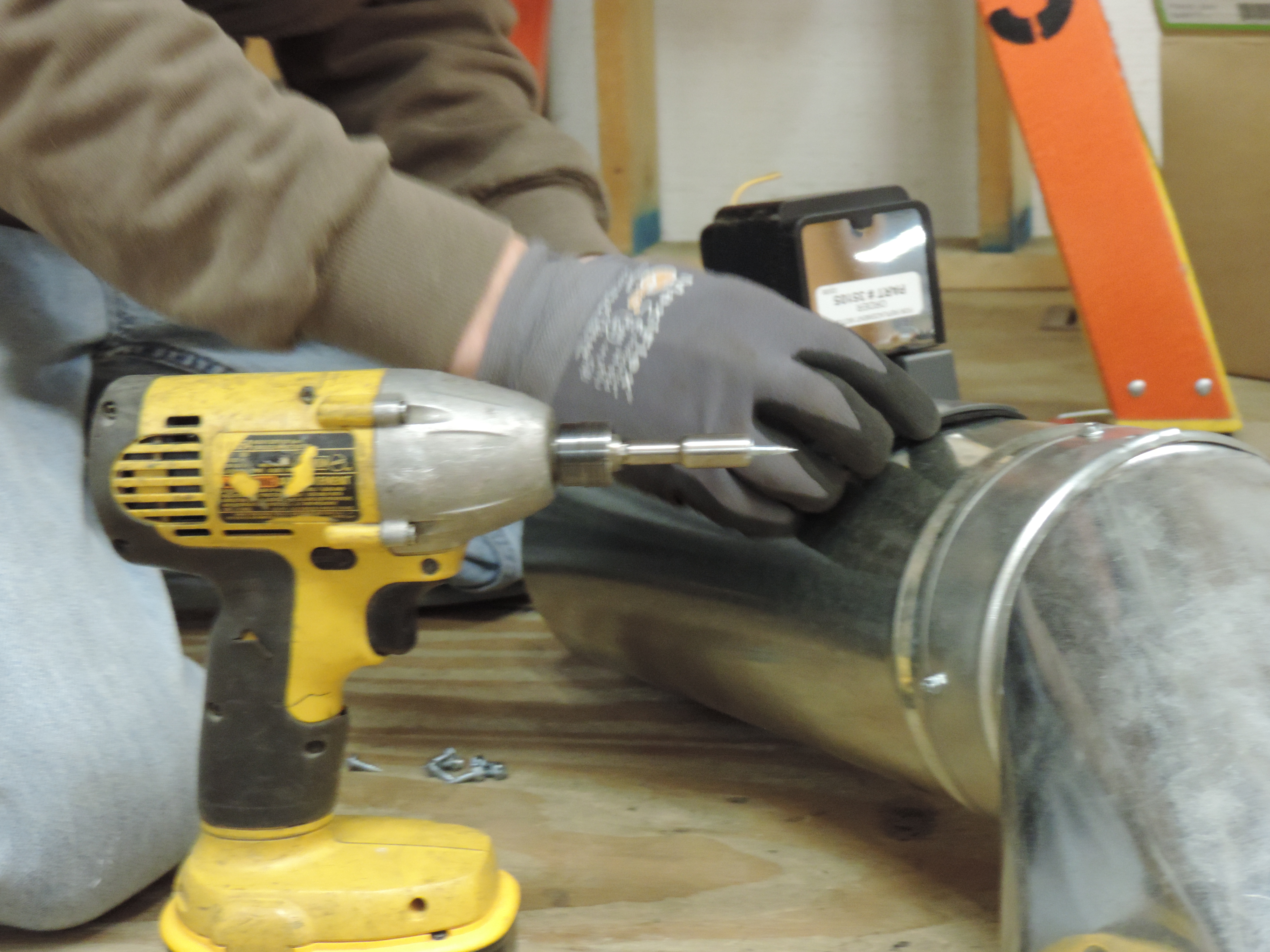 Apprentices of the Local #265 Sheet Metal Union in Carol Stream, Illinois installing a donated DuroZone zoning system. Instructor, Joseph P. Carone reports they were impressed with the system.