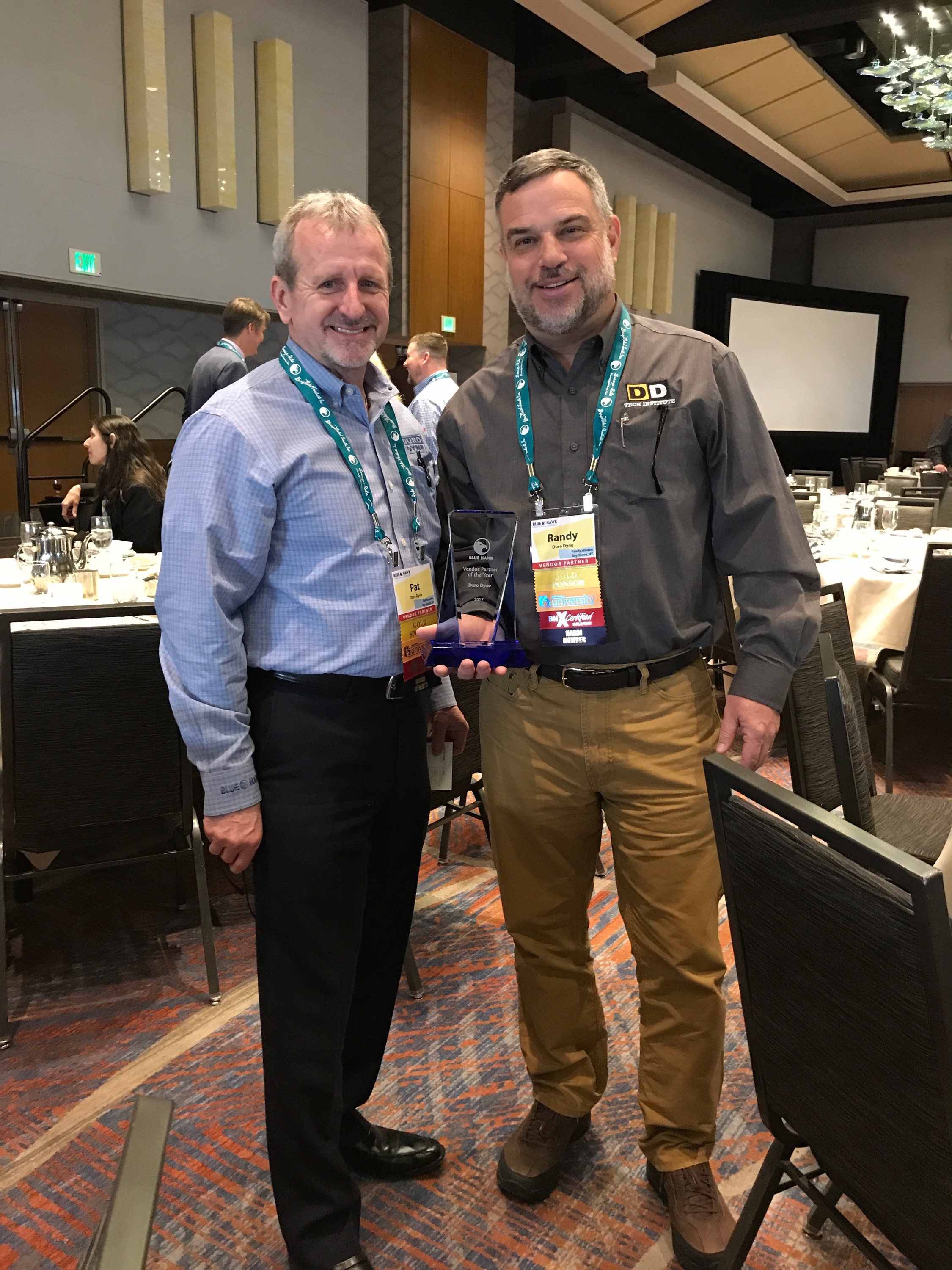 Duro Dyne is proud to accept the Vendor of the Year award at the Blue Hawk Conference on April 20, 2017 in Denver!
