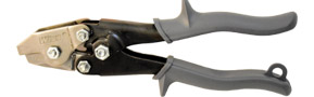 The notcher has high leverage compound action handles for fast and easy cutting. It produces a true 30˚ V-shaped cut in sheet metal. The tool features clean notching without slippage. It has a matte black finish with red plastisol grips.